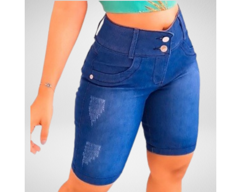 Bermuda jeans Feminina Cintura Alta Detalhe Rasgadinho