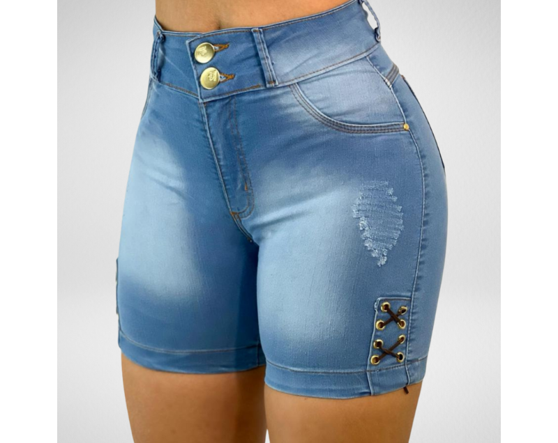Bermuda Jeans Feminino Cintura Alta com Laços