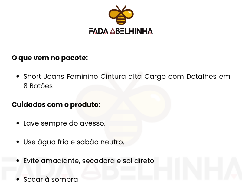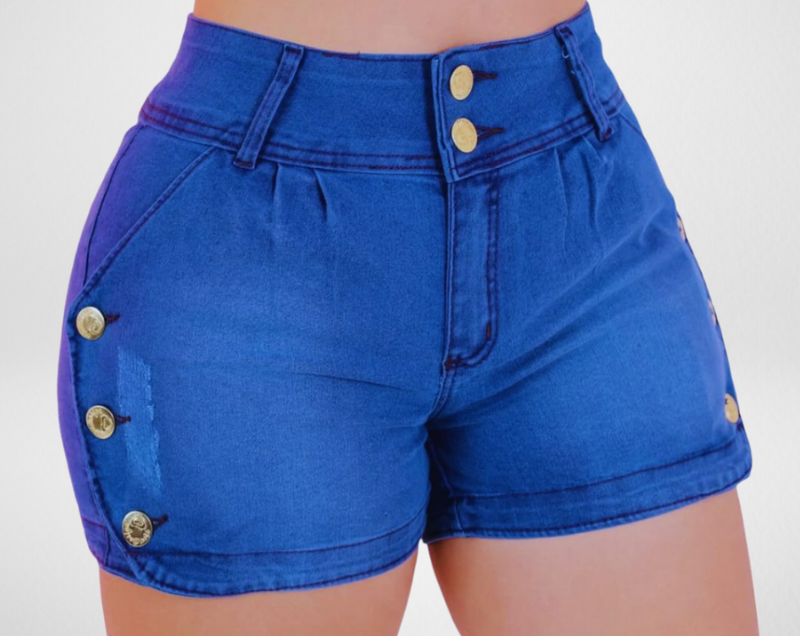 Short Jeans Feminino Cintura alta Cargo com Detalhes em 8 Botões