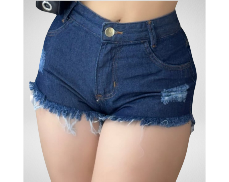 Short Jeans Feminino Curto Barra Desfiada Azul Escuro
