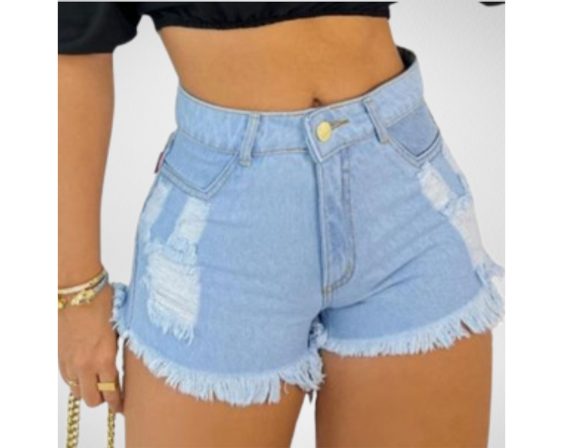 Short Jeans Feminino Curto Barra Desfiada com Bolsos