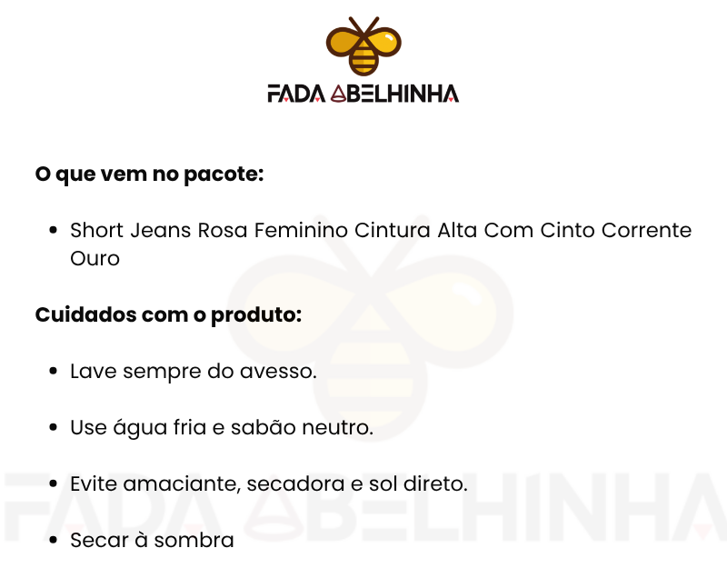 Short Jeans Rosa Feminino Cintura Alta Com Cinto Corrente Ouro